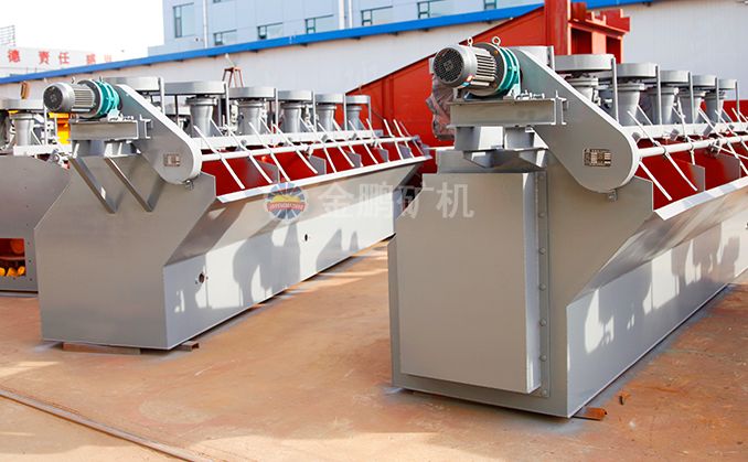 本工藝采用兩段一閉路破碎流程,合格產品進入粉礦倉緩存,礦石由擺式給礦機均勻的給到直筒節能格子型球磨機進行磨礦,格子球磨機和高堰式單螺旋分級組成一段閉路磨礦分級流程。分級溢流經過攪拌槽的調漿后進入浮選系統,通過做礦石的可選性實驗研究我們選擇一粗兩精兩掃的浮選流程,能很大程度的回收脈石中的有價金元素。浮選金精礦通過濃密機進行濃縮,濃密機的溢流水返回流程使用,底流自流至圓筒外濾式過濾機進行脫水從而得到金精礦粉。