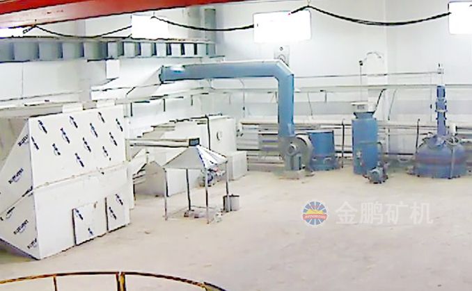 選廠規模為日處理原礦1000噸,最終產品為成品金錠。 碎礦采用三段一閉路碎礦流程。粗碎為C24×36顎式破碎機一臺,中碎為S155B中型圓錐破碎機一臺,細碎為S155D短頭圓錐破碎機一臺,篩分為YAHG2448圓振動篩一臺。最終破碎產品粒度為0~12mm。