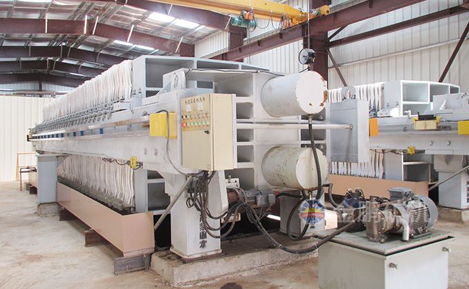浸出槽尾礦經(jīng)緩沖槽由泵輸送到全自動(dòng)廂式壓濾機(jī),壓濾后的水流入循環(huán)水池以備循環(huán)利用,濾餅經(jīng)帶運(yùn)輸機(jī)運(yùn)到尾礦堆場,卡車將尾礦運(yùn)到尾礦庫。
