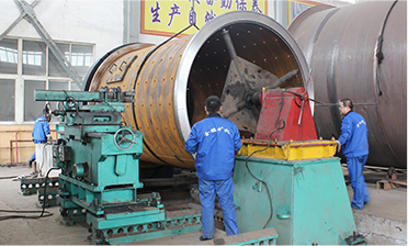 金鵬機械制造廠憑著過硬的設備質量,在同行業中率先通過了IS9001: 2008國際質量認證。現擁有數臺大型數控自動割、數 控自動焊、5米數控大立車、數控車床、并擁有大型15米車床, 保證設備的加工精度和優良的外觀質量。