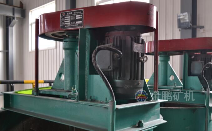 電動機經皮帶、葉輪軸帶動葉輪旋轉進行工作,礦漿和浮選藥劑在葉輪產生的離心力和升力作用下在槽內循環運動,從而使藥劑均勻分布于礦漿之中。提升攪拌槽在攪拌礦漿的同時,其葉輪借助本身的離心力將礦漿從下面的進漿口吸入后甩出,從而達到提升礦漿的目的。提升攪拌槽為保證礦漿的提升高度,必須注意葉輪與底板之間的間隙大小,一般間隙調整在6-10mm之間。