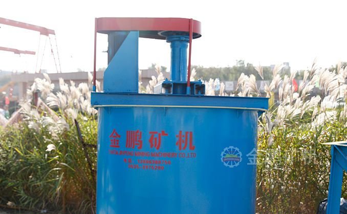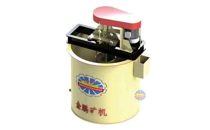 攪拌槽由主軸部件、架子、槽體部、循環(huán)桶、電動機、電動機座組成。葉輪的旋轉是由電動機通過皮帶輪、三角帶而得到葉輪的旋轉使礦漿和藥劑攪拌均勻。