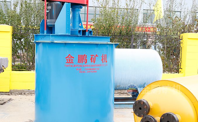 該礦用攪拌桶工作時,在葉輪的旋轉作用下,礦漿和藥劑產(chǎn)生大、小循環(huán)運動,從而使整個槽內的礦漿、藥劑達到均勻混合,混勻的懸浮液由溢流口排除。