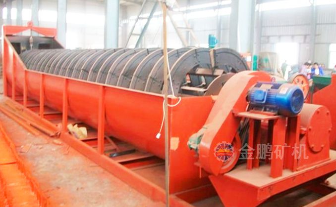 沉沒式螺旋分級(jí)機(jī)是借助于固體粒大小不同、比重不同,因而在液體中的沉降速度不同的原理,細(xì)礦粒浮游在水中由溢流堰溢出,粗礦粒沉于槽底,由螺旋推向上部排出,來進(jìn)行機(jī)械分級(jí)的一種分級(jí)設(shè)備。通過螺旋低速轉(zhuǎn)動(dòng),對(duì)礦漿起攪拌作用使細(xì)顆粒懸浮到上面,流到溢流堰處溢出,粗顆粒沉到槽底,由螺旋輸送到排料口作為返砂排出。
