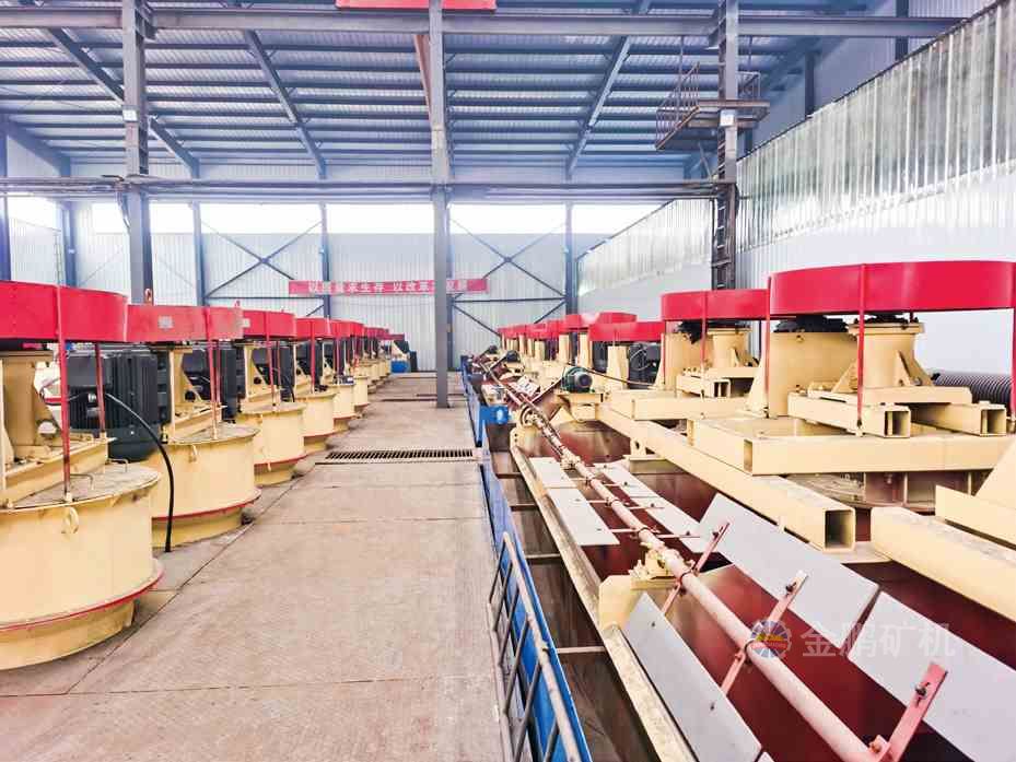浮選是石墨選礦中最常用的方法,基本上所有的鱗片石墨選礦廠均用浮選選別石墨,選礦流程一般為:一粗、一掃和七 至十一精,可得固定碳含量為90-97%的石墨精礦,為了保護(hù)鱗片精礦再磨一般選擇砂磨機(jī),鱗片石墨由于其疏水性強(qiáng), 具有天然可浮性,一般采用煤油或柴油作為石墨的捕收劑,2號油或4號油作為起泡劑進(jìn)行石墨浮選,有時為了調(diào)整礦漿 pH還需加入石灰或者碳酸鈉,調(diào)整pH在8-9左右。對于含有粘土、石英、云母、長石等硅酸鹽礦物時,需加入水玻璃、 糊精、淀粉、纖維素等抑制脈石礦物和分散礦泥。