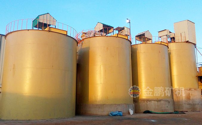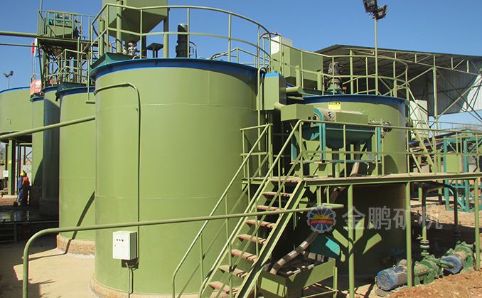 1、 攪拌浸出---金的浸出主要是在浸出槽中實(shí)現(xiàn)的,含氰化物的礦漿在葉輪和壓縮空氣的作用下,被強(qiáng)烈攪拌,有利于提高浸出效果。浸出槽通常采用多臺(tái)串聯(lián)配置;